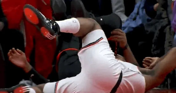 比赛第四节,哈登不惧危险抛投造成干扰球,落地后捂着腰部表情痛苦。